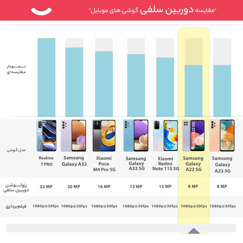 گوشیهای هوشمند میانرده سری A و M سامسونگ توانستهاند به نسبت رقبا عملکرد بهتری را به نمایش بگذارند. این گوشیهای هوشمند با بهره بردن از مشخصات فنی مناسب در کنار قیمت مقرون بهصرفه توانستند کاربران بسیاری را به سمت خود جلب کنند و فروش چشمگیری در بازار جهانی داشتهاند. سامسونگ گلکسی A22 5G هم یکی از محصولات باکیفیت این شرکت است که از مشخصات فنی بسیار خوبی در جایگاه یک گوشی میانرده بهره برده است. در نمای روبهرویی این گوشی به صفحهنمایش 6.6 اینچ با رزولوشن 1080×2400 پیکسل از نوع TFT مجهز شده است. توانایی ارائه نرخ بروزرسانی 90 هرتز، رزولوشن بسیار خوب و تراکم پیکسلی 399 پیکسل در هر اینچ، سبب شده تا این صفحهنمایش کیفیت بسیار خوب و قابل قبولی را ارائه کند. در قسمت پشتی هم یک سنسور دوربین اصلی با رزولوشن 48 مگاپیکسل و گشودگی دریچه دیافراگم f/1.8 از نوع عریض در کنار سنسور 5 مگاپیکسلی از نوع فوق عریض (ultra wide) با زاویه دید 115 درجه و سنسور 2 مگاپیکسل سنجش عمق، سنسورهای دوربین سهگانه سامسونگ گلکسی A22 5G را تشکیل میدهند. برای دوربین سلفی هم سنسور 8 مگاپیکسلی از نوع عریض در نظر گرفته شده است. در بخش مشخصات سختافزاری هم به پردازنده میانرده دیمنسیتی 700 5G شرکت مدیاتک مجهز شده است. پردازندهای با معماری 7 نانومتری که در کنار عملکرد خوب در اجرای بازیهای حتی سنگین (بهتر است که تنظیمات گرافیکی بازیهای سنگین مثل آسفالت 9 را روی حالت low تنظیم کنید تا عملکرد بهتری را شاهد باشید) توانایی پشتیبانی از شبکههای اینترنتی پرسرعت نسل پنجم یا همان 5G را هم دارد. باتری قدرتمند با میزان ظرفیت 5000 میلیآمپرساعت در نظر گرفته شده هم میتواند به ازای هر بار شارژ 100 درصدی، طول عمر مفید (زمان آماده بهکار) بسیار قابل قبولی را ارائه کند.