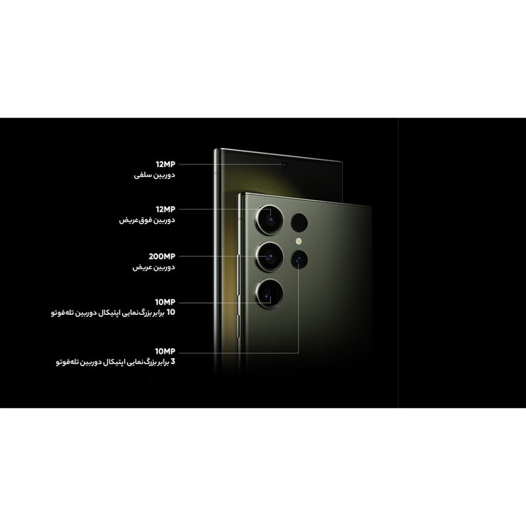 سامسونگ Galaxy S23 Ultra بهعنوان گل سرسبد گوشیهای هوشمند خانواده S23 با بهره بردن از مشخصات فنی قدرتمند معرفی شد. سامسونگ Galaxy S23 Ultra به نسبت نسل قبلی یعنی Galaxy S22 Ultra تغییرات زیادی نداشته و تقریبا هر دو گوشی از طراحی مشابهی بهره بردند. اما باید بدانید که Galaxy S23 Ultra به نسبت نسل قبلی، قدرتمندتر از همیشه وارد میدان رقابت شده است. در نمای روبهرویی این گوشی به صفحهنمایش شگفتانگیز با ابعاد 6.8 اینچ و رزولوشن 1440×3088 پیکسل از نوع Dynamic AMOLED 2X مجهز شده. از جمله قابلیتهای قدرتمند این صفحهنمایش میتوانیم به توانایی نمایش 501 پیکسل در هر اینچ، نرخ بروزرسانی 120 هرتز و حداکثر روشنایی 1750 نیت (nits) اشاره کنیم. تمام این مشخصات سبب شدهاند تا صفحهنمایش این گوشی، هرآنچه که از یک صفحهنمایش گوشی پرچمدار توقع دارید را برآورده کند. برای سنسورهای قسمت پشتی هم سامسونگ دست به تغییر جدیدی زد و این بار سنسور دوربین عریض با رزولوشن 200 مگاپیکسل را برای این گوشی هوشمند در نظر گرفت. سنسوری که بدون هیچ شکی توانایی ارائه عملکرد فوقالعادهای در نور روز و نور شب دارد. سنسور 10 مگاپیکسل از نوع پریسکوپتلهفوتو با توانایی زوم 10 برابری اپتیکال در کنار سنسور 10 مگاپیکسل از نوع تلهفوتو با قابلیت زوم 3 برابری اپتیکال و سنسور 12 مگاپیکسل از نوع فوق عریض (ultrawide)، دیگر سنسورهای دوربین قسمت پشتی این گوشی را تشکیل میدهند. سنسور دوربین عریض این گوشی توانایی ضبط ویدیو با حداکثر کیفیت 8K و سرعت 30 فریم در ثانیه را هم دارد. برای دوربین سلفی، سنسور با رزولوشن 12 مگاپیکسل در نظر گرفته شده که توانایی ضبط ویدیو با حداکثر کیفیت 4K و سرعت 60 فریم در ثانیه را دارد. حضور پردازنده قدرتمند اسنپدراگون 8 نسل دو شرکت کوالکام هم سبب شده تا سامسونگ Galaxy S23 Ultra بهراحتی هرچه تمامتر از پس اجرای بازیهای سنگین و باگرافیک بالا بربیاید. باتری با میزان ظرفیت 5000 میلیآمپرساعت و پشتیبانی از فناوری شارژ سریع با توان 45 وات هم از دیگر مشخصات در نظر گرفته شده برای این گوشی هوشمند است. قلم هوشمند S-Pen هم با قابلیتهای جذاب این گوشی را همراهی میکند. این گوشی بههمراه شارژر دیواری 25 وات سامسونگ به فروش میرسد که رنگ شارژر ارسالی ممکن است سفید یا مشکی باشد.