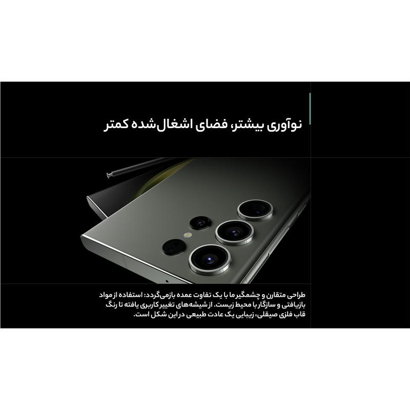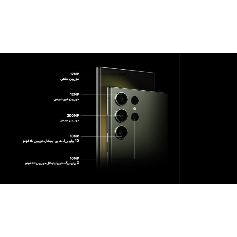 سامسونگ Galaxy S23 Ultra بهعنوان گل سرسبد گوشیهای هوشمند خانواده S23 با بهره بردن از مشخصات فنی قدرتمند معرفی شد. سامسونگ Galaxy S23 Ultra به نسبت نسل قبلی یعنی Galaxy S22 Ultra تغییرات زیادی نداشته و تقریبا هر دو گوشی از طراحی مشابهی بهره بردند. اما باید بدانید که Galaxy S23 Ultra به نسبت نسل قبلی، قدرتمندتر از همیشه وارد میدان رقابت شده است. در نمای روبهرویی این گوشی به صفحهنمایش شگفتانگیز با ابعاد 6.8 اینچ و رزولوشن 1440×3088 پیکسل از نوع Dynamic AMOLED 2X مجهز شده. از جمله قابلیتهای قدرتمند این صفحهنمایش میتوانیم به توانایی نمایش 501 پیکسل در هر اینچ، نرخ بروزرسانی 120 هرتز و حداکثر روشنایی 1750 نیت (nits) اشاره کنیم. تمام این مشخصات سبب شدهاند تا صفحهنمایش این گوشی، هرآنچه که از یک صفحهنمایش گوشی پرچمدار توقع دارید را برآورده کند. برای سنسورهای قسمت پشتی هم سامسونگ دست به تغییر جدیدی زد و این بار سنسور دوربین عریض با رزولوشن 200 مگاپیکسل را برای این گوشی هوشمند در نظر گرفت. سنسوری که بدون هیچ شکی توانایی ارائه عملکرد فوقالعادهای در نور روز و نور شب دارد. سنسور 10 مگاپیکسل از نوع پریسکوپتلهفوتو با توانایی زوم 10 برابری اپتیکال در کنار سنسور 10 مگاپیکسل از نوع تلهفوتو با قابلیت زوم 3 برابری اپتیکال و سنسور 12 مگاپیکسل از نوع فوق عریض (ultrawide)، دیگر سنسورهای دوربین قسمت پشتی این گوشی را تشکیل میدهند. سنسور دوربین عریض این گوشی توانایی ضبط ویدیو با حداکثر کیفیت 8K و سرعت 30 فریم در ثانیه را هم دارد. برای دوربین سلفی، سنسور با رزولوشن 12 مگاپیکسل در نظر گرفته شده که توانایی ضبط ویدیو با حداکثر کیفیت 4K و سرعت 60 فریم در ثانیه را دارد. حضور پردازنده قدرتمند اسنپدراگون 8 نسل دو شرکت کوالکام هم سبب شده تا سامسونگ Galaxy S23 Ultra بهراحتی هرچه تمامتر از پس اجرای بازیهای سنگین و باگرافیک بالا بربیاید. باتری با میزان ظرفیت 5000 میلیآمپرساعت و پشتیبانی از فناوری شارژ سریع با توان 45 وات هم از دیگر مشخصات در نظر گرفته شده برای این گوشی هوشمند است. قلم هوشمند S-Pen هم با قابلیتهای جذاب این گوشی را همراهی میکند. این گوشی بههمراه شارژر دیواری 25 وات سامسونگ به فروش میرسد که رنگ شارژر ارسالی ممکن است سفید یا مشکی باشد.