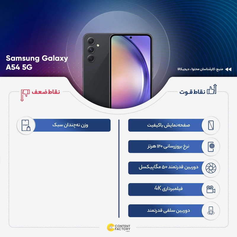 گوشی موبایل سامسونگ مدل Galaxy A54 5G دو سیم کارت ظرفیت 256 گیگابایت و رم 8 گیگابایت به همراه شارژر 25وات سامسونگ - ویتنام