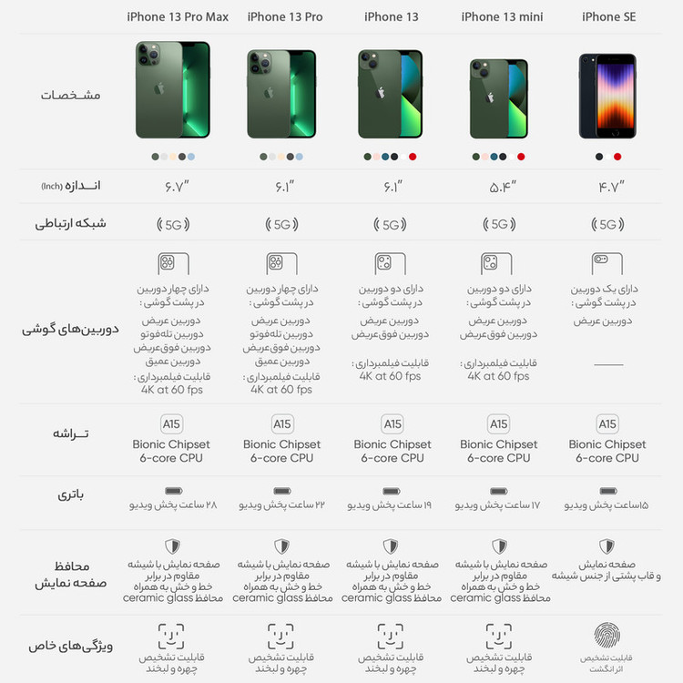 سری SE گوشیهای هوشمند شرکت اپل با بهره بردن از قیمتهای ارزانتری به نسبت پرچمداران این شرکت، طرفداران بسیار زیادی در بین کاربران داشتهاند و توانستهاند فروش بسیار خوبی را در بازار به خود اختصاص دهند. iPhone SE 2022 JA هم به عنوان یکی از گوشیهای مقرون بهصرفه این شرکت معرفی شد و مشخصات قدرتمندی را با خود بههمراه داشت. این گوشی به صفحهنمایش با ابعاد 4.7 اینچ و رزولوشن 750×1334 مجهز شده که توانایی نمایش 326 پیکسل در هر اینچ را دارد. در قسمت پشتی تنها یک سنسور دوربین اصلی با رزولوشن 12 مگاپیکسل را شاهد هستیم که توانایی ضبط ویدیو با حداکثر کیفیت 4K سرعت 60 فریم در ثانیه را هم دارد. دوربین سلفی با رزولوشن 7 مگاپیکسل هم iPhone SE 2022 JA را همراهی میکند. این گوشی هوشمند به یکی از قدرتمندترین پردازندههای اختصاصی اپل یعنی A15 بایونیک مجهز شده است. پردازندهای که بهراحتی از پس بازیهای سنگین برمیآید و عملکرد بسیار خوبی را ارائه میکند. باتری 2018 میلیآمپرساعت به توانایی پشتیبانی از شارژر با توان 20 وات و مجهز به فناوری شارژ سریع از دیگر مشخصات در نظر گرفته شده برای iPhone SE 2022 JA هستند. گوشیهای نات اکتیو با قرار گرفتن سیمکارتهای داخلی اکتیو میشوند و برخلاف مدل اکتیو پلمپ کالا باز نشده است. گوشیهای اکتیو برند اپل هم به این شکل هستند که به دلیل محدودیتهای برخی از محصولات اپل برای کشور ایران، در کشورهای همسایه بهصورت رسمی با یک بار قرار گرفتن سیمکارت، اکتیو شده و پلمپ میشوند و باید بدانید که این پروسه هیچ مشکلی در راستای گارانتی کالا بههمراه ندارد. پارتنامبرهای اروپا و ژاپن و امارات تک سیمکارت هستند و پارتنامبرهای مربوط به امارات هم از فیس تایم پشتیبانی نمیکنند. پارتنامبر JA (ژاپن) هم حتی در حالت سایلنت صدای شاتر عکس قطع نمیشود.